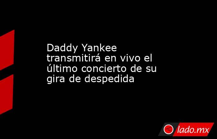 El cantante puertorriqueño Daddy Yankee transmitirá en vivo para sus fanáticos de todo el mundo el último concierto de su gira de despedida, que se celebrará el próximo 3 de diciembre en el Coliseo de Puerto Rico.