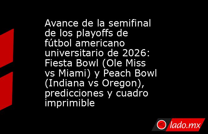 El Playoff de fútbol universitario 2025-26 ha brindado grandes juegos, con sorpresas y actuaciones dominantes que han reducido el campo a cuatro oponentes poco probables. Las semifinales cuentan con dos enfrentamientos emocionantes: el Vrbo Fiesta Bowl que enfrenta al No. 6 Ole Miss contra el No. 10 Miami, y el Chick-fil-A Peach Bowl revancha cont