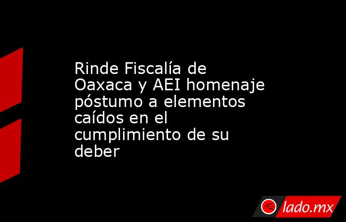 - Al rendir un homenaje de cuerpo presente a los elementos de la Agencia Estatal de Investigaciones (AEI), José Luis Daniel Calvo Tapia y Minyak Omar Moreno Plascencia, quienes fallecieron en el cumplimiento de su deber al momento de sufrir una emboscada […]The post Rinde Fiscalía de Oaxaca y AEI homenaje póstumo a elementos caídos en el cumplimiento de su deber appeared first on Página 3.