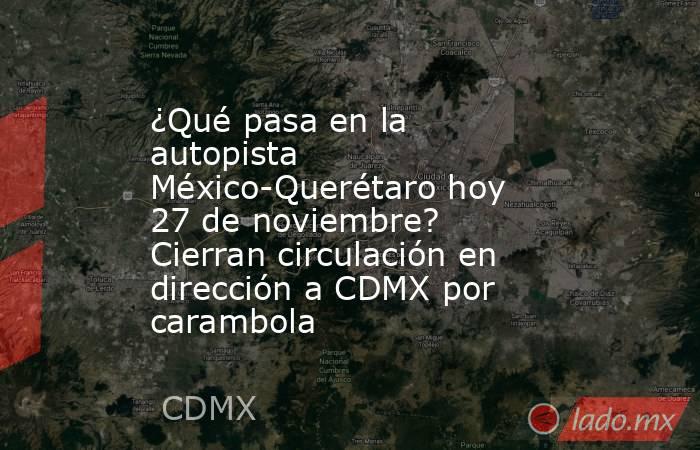 La mañana del lunes 27 de noviembre se registró un accidente en la autopista México-Querétaro, cuando se presentó una carambola con dirección a la Ciudad de México (CDMX).