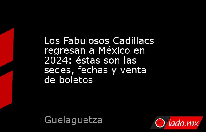 4 de febrero – Oaxaca – Auditorio Guelaguetza7 de febrero – Puebla – Auditorio GNP Seguros9 de febrero – Querétaro – Autódromo de Querétaro¿Cuándo inicia la venta de boletos para Los Fabulosos Cadillacs?Será este 30 de noviembre cuando los tarjetahabientes del banco Citibanamex podrán acceder a la preventa de los boletos, y un día después se abrirá la venta generas y se podrán adquirir en las taquillas de los inmuebles o a través de www.