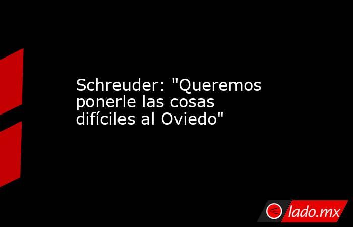 Castellón, 4 dic (EFE). El Castellón encara con ilusión la eliminatoria de Copa del Rey que afronta este martes en su estadio ante el Oviedo, con su entrenador Dick Schreuder asegurando que desean "ponerle las cosas difíciles" al cuadro oviedista.