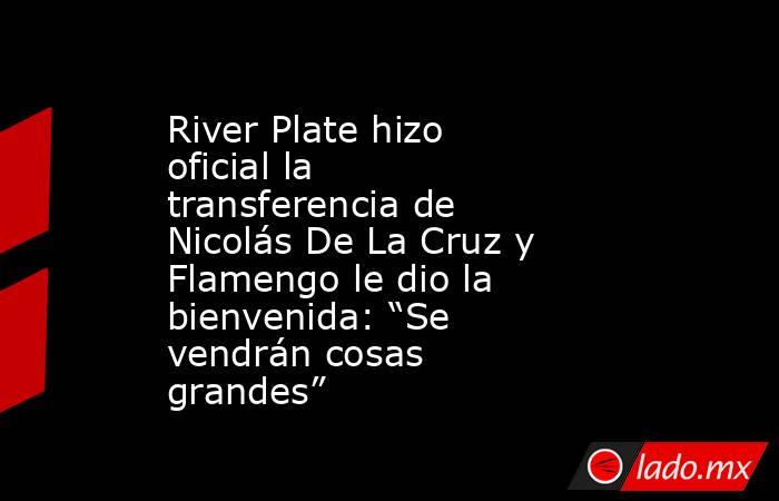 “Nación, ¿cómo están? Acá Nico De La Cruz. Estoy llegando en 2024 y en los próximos años se vendrán cosas grandes y espero que nos acompañen”, fue el mensaje inicial que grabó el futbolista de 26 años con la camiseta del Flamengo.