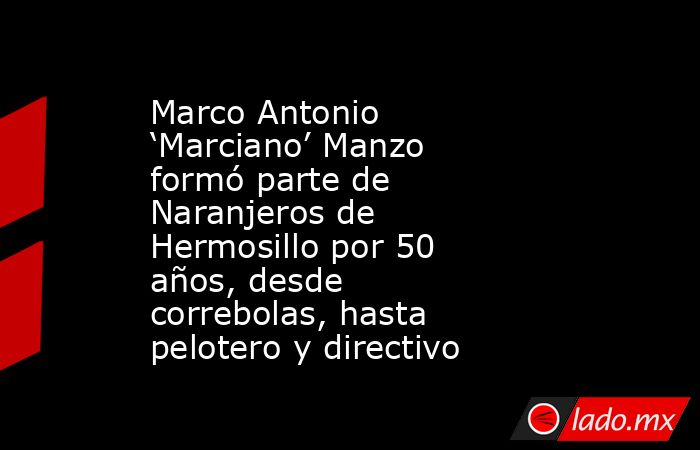 Hermosillo, Sonora.- Desde ‘correbolas’ hasta gerente y directivo de Naranjeros de Hermosillo, son las posiciones que Marco Antonio Manzo jugó a lo largo de los 50 años que formó parte de la Escuadra Naranja.