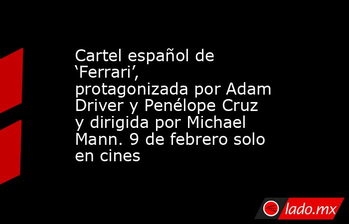 Ya se puede ver el cartel oficial de FERRARI, la película sobre la vida del piloto y fundador de Scuderia Ferrari y la famosa marca de automóviles, Enzo Ferrari, protagonizada por Adam Driver (Star Wars, La casa Gucci) y Penélope Cruz (Madres Paralelas, Agentes 355), y dirigida por el reputado director estadounidense Michael Mann (El dilema, Collateral). Este apasionante biopic llega a nuestros cines el 9 de febrero de 2024.