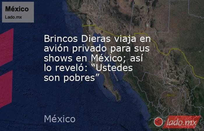 Esto dijo Brincos Dieras sobre su viaje en avión privadoHace un mes, de visita en el programa de YouTube que conducen los standuperos Slobotzky y Ricardo Pérez, Brincos Dieras reveló el lujo que se da para transportarse por el país.