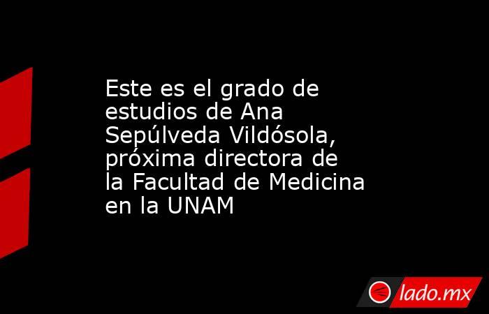 El viernes 26, las autoridades de la Universidad Nacional Autónoma de México (UNAM) dio a conocer que Ana Carolina Sepúlveda Vildósola será la nueva directora de la Facultad de Medicina de la institución, luego de que la Junta de Gobierno la designara para ocupar el cargo del periodo 2024 - 2028.