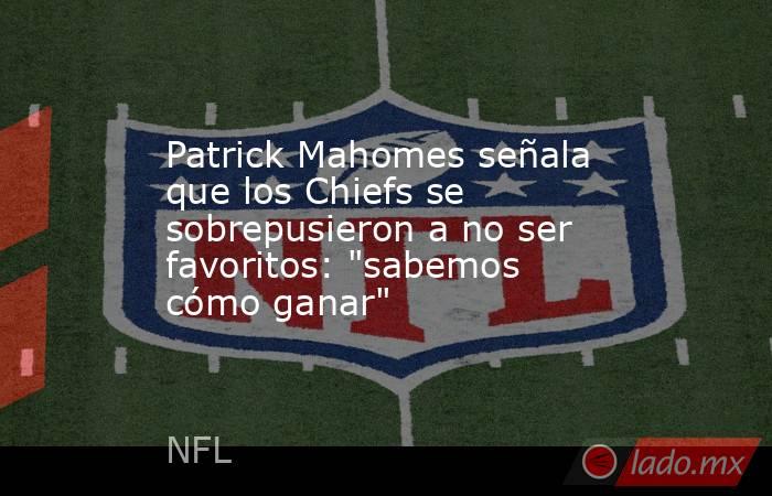Patrick Mahomes, 'quarterback' de los campeones Kansas City Chiefs, afirmó este domingo que su equipo supo sobreponerse a no ser considerado favorito para ganar el título de la Conferencia Americana y avanzar al Super Bowl LVIII para defender su campeonato.