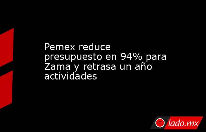 Petróleos Mexicanos (Pemex) envió a la Comisión Nacional de Hidrocarburos (CNH) una modificación al Programa de Trabajo del Campo Zama, por lo que se retrasará un año su entrada en actividades, además de reducir 96 por ciento el presupuesto del Plan de Desarrollo para la Extracción del área.