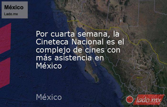Cineteca Nacional, 25 mil 374 asistentesForum Buenavista-Cinépolis, 16 mil 514 asistentesPerisur, Cinépolis 15 mil 468 asistentesForum Tlaquepaque (Guadalajara)-Cinépolis,15 mil 238 asistentesLas Misiones (Ciudad Juárez)-Cinépolis, 13 mil 510 asistentes¡Felicitamos a todas las personas que hacen posible la operación de la @CinetecaMexico!Por cuarta semana consecutiva, la Cineteca Nacional destaca como el complejo de salas de cine con mayor asistencia en el país.
