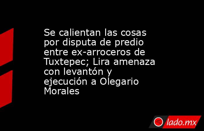 - Por disputa de terreno, el líder de la organización social “Emiliano Zapata”, Olegario Morales Calígua, denunció amenazas de “levantón”y “ejecución” por parte del ex-líder de arroceros en el municipio de Tuxtepec, Francisco Lira Vazquez.