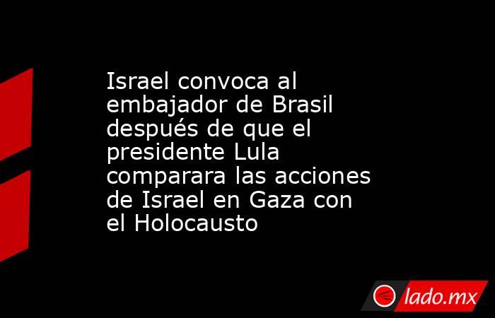 (CNN) -- El gobierno de Israel comunicó este domingo que convocará al embajador de Brasil por las antdeclaraciones del presidente de Brasil, Luiz Inácio Lula da Silva, sobre el actual conflicto entre Israel y Hamas.