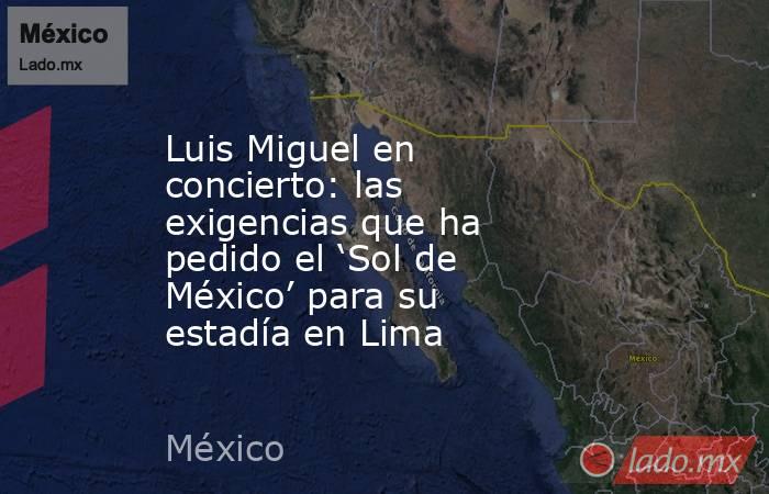 Para su estancia en la capital peruana, Luis Miguel ha solicitado una serie de artículos y servicios específicos. Entre sus peticiones destacan: