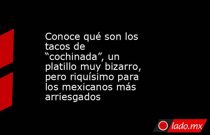 A pesar de que su nombre pueda hacer pensar que no es algo delicioso, aquellos que son fans de este platillo aseguran que vale la pena comer uno o varios.Así que si te encuentras en la Ciudad de México y te gustaría probar algo único y tradicional, los tacos de ‘cochinada’ podrían ser una excelente opción.