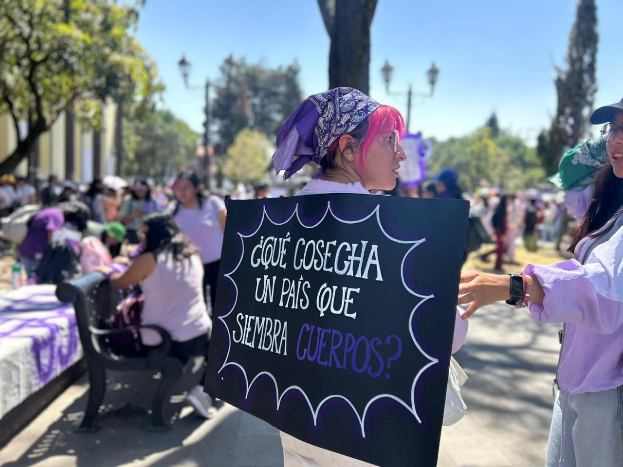 Una marea, sobre todo morada, verde y violeta cubrió el primero cuadro de Toluca por el llamado #8M en el Día Internacional de la Mujer.