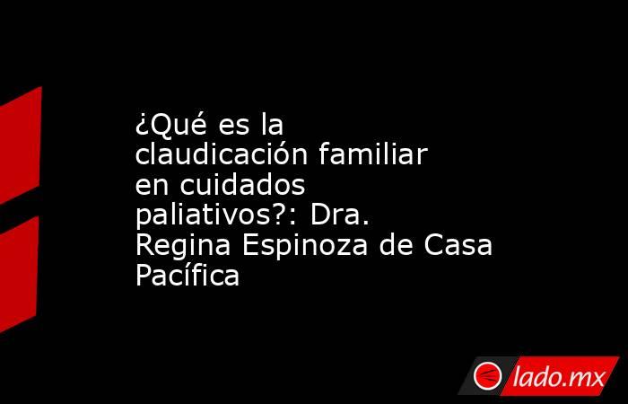 The post ¿Qué es la claudicación familiar en cuidados paliativos?: Dra. Regina Espinoza de Casa Pacífica appeared first on Proyecto Puente.