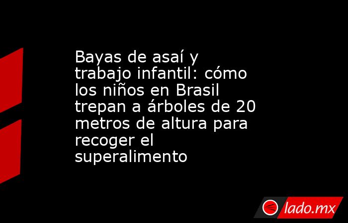 En 2012, el estado de Pará, que produce más del 90% del asaí de Brasil, exportó 39 toneladas de la fruta; en 2022, se exportaron 8.158 toneladas, generando más de US$ 26 millones en ingresos, según datos de la industria. Como resultado, a los niños se los envía a hacer viajes peligrosos para recolectar la fruta, para lo que trepan a árboles de hasta 20 metros de altura sin arneses y exponiéndose a los peligros de los pantanos de la selva tropical, incluidas serpientes venenosas, escorpiones y jaguares.