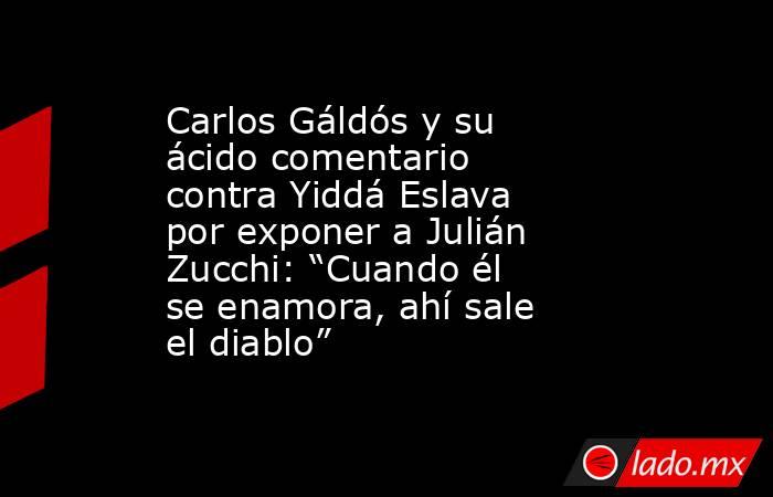 “‘Qué bonito divorcio es el que estamos llevando’.... hasta que me entero que eres feliz. ‘Miren cuánta inteligencia emocional tenemos como padres de nuestros hijos’... hasta que me entero que eres feliz. ‘No, todo bien, que le vaya bien en la vida, si no fue conmigo, no importa’... hasta que me entero que estás con otra persona y que eres feliz”, fueron loss ácidos comentarios de Carlos Galdós, tratando de parodiar las frases que un día dijo Yiddá Eslava cuando se separó de Julián Zucchi.