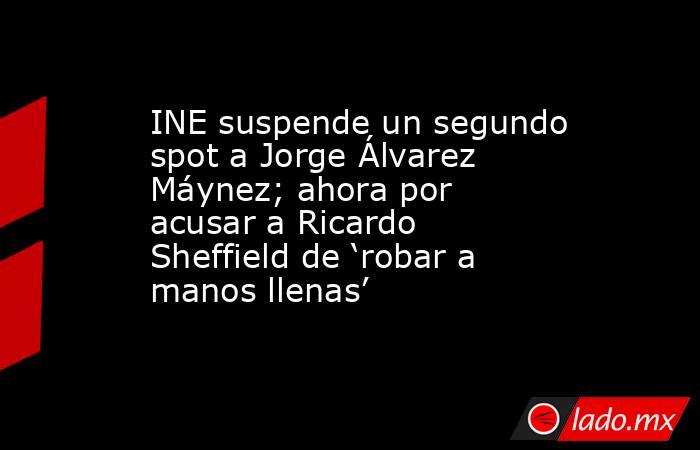 - Por segundo día consecutivo, el Instituto Nacional Electoral (INE) ordenó a Movimiento Ciudadano (MC) suspender la difusión de un spot de su candidato presidencial Jorge Álvarez Máynez, en el cual acusa al candidato de Morena a Senador por Guanajuato, Ricardo Sheffield Padilla, de robar “a manos llenas”, publicó Proceso.