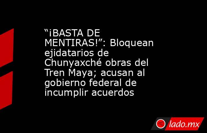 - Alrededor de 800 ejidatarios de Chunyaxché y anexos iniciaron esta mañana un bloqueo en las obras del Tren Maya en la zona, para exigir, entre otras cosas, que el gobierno federal cumpla regulando 5 mil 900 hectáreas de tierra que fueron parte del compromiso que realizó antes de la construcción de […]The post “¡BASTA DE MENTIRAS!”: Bloquean ejidatarios de Chunyaxché obras del Tren Maya; acusan al gobierno federal de incumplir acuerdos appeared first on Noticaribe.