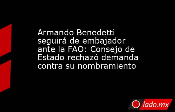 En las primeras horas del martes 19 de marzo, el Consejo de Estado rechazó estudiar las demandas contra el nombramiento de Armando Benedetti como embajador ante la Organización de las Naciones Unidas para la Alimentación y Agricultura (FAO) en Roma, Italia, cargo en el que está desde el 8 de febrero del 2024.