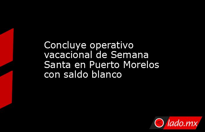 - La coordinación de Protección Civil de Puerto Morelos informó que concluyó el operativo vacacional de Semana Santa, en el que se contó con el apoyo de diversas corporaciones e instituciones estatales y federales, para garantizar la seguridad de los habitantes del municipio y los visitantes nacionales y extranjeros que llegaron al destino.