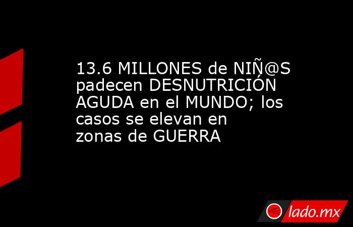 El Fondo de Naciones Unidas para la Infancia (Unicef) alerta que 13.6 millones de niños menores de cinco años padecen desnutrición aguda grave o emaciación grave a escala mundial. Los casos se incrementan, afirma, en zonas de guerra y donde ya se sienten los efectos devastadores del cambio climático.