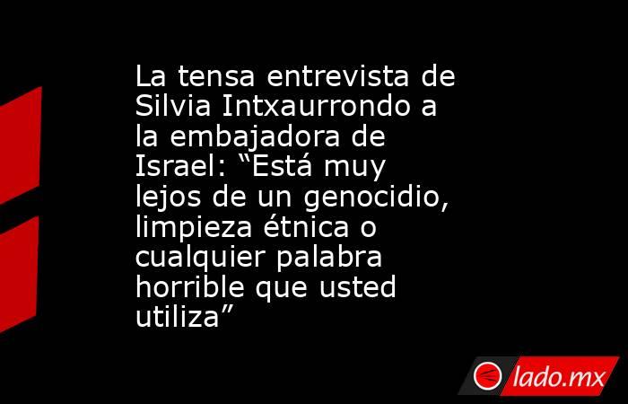 Intxaurrondo, ya conocida por sus entrevistas afiladas, algunas muy sonadas, ha planteado preguntas que la diplomática ha rechazado ya en su planteamiento. “Embajadora, hablemos de Gaza: ¿se puede justificar el asesinato de 14.000 niños y niñas inocentes en seis meses”, ha planteado la periodista. Y Radian-Gordon ha contestado: “Yo rechazo con toda la fuerza la palabra asesinato. Israel es uno de los pocos países que ha hecho esfuerzos para que no haya daños a una sociedad civil inocente, que no está involucrada, pero desafortunadamente el tipo de guerra que hay en Gaza y Hamás hacen todo para que esta población esté allí y para que haya bajas civiles”.