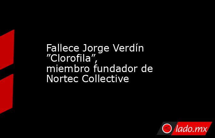 El fallecimiento de Jorge ”Clorofila” Verdín fue confirmado por las redes sociales de Nortec Collective y por Nacional Records y Static Discos, las últimas firmas con las que el artista trabajó.
