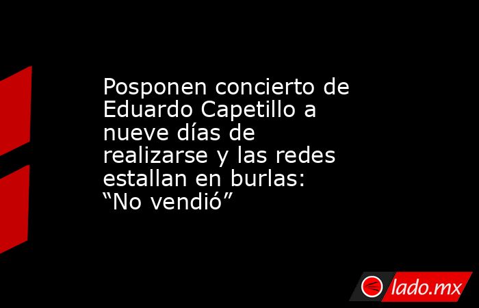 Y es que a tan sólo nueve días de que se llegara el día anunciado para el concierto de “Capeto”, como se le apoda, en el recinto de la calle de Independencia, en el Centro Histórico de la Ciudad de México, la empresa de eventos dio a conocer la posposición del mismo.