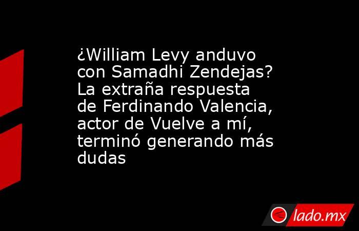 Ferdinando Valencia lo confirma. Él y William Levy se volvieron grandes amigos en la serie Vuelve a mí; sin embargo, no dirá nada del escándalo que involucra a Samadhi Zendejas -de 29 años de edad-.