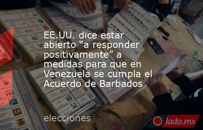 (CNN Español) -- El jefe de la misión de Estados Unidos para Venezuela, Francisco Palmieri, dijo este lunes que habló con empresas estadounidenses sobre el posible alivio de las sanciones impuestas al país sudamericano y aseguró que su país está abierto “a responder positivamente a medidas significativas hacia la plena implementación del Acuerdo de Barbados”, el pacto que el Gobierno y la oposición venezolanas firmaron en 2023 para comprometerse a que este año haya elecciones libres, de acuerdo con un mensaje de la cuenta de X de la representación diplomática del país norteamericano en Venezuela.