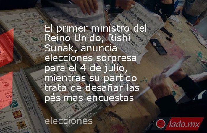 (CNN) -- El primer ministro del Reino Unido, Rishi Sunak, convocó este miércoles a elecciones generales anticipadas para el 4 de julio, en un momento en que su partido, el Conservador, se enfrenta a una ardua lucha por prolongar sus 14 años en el poder.