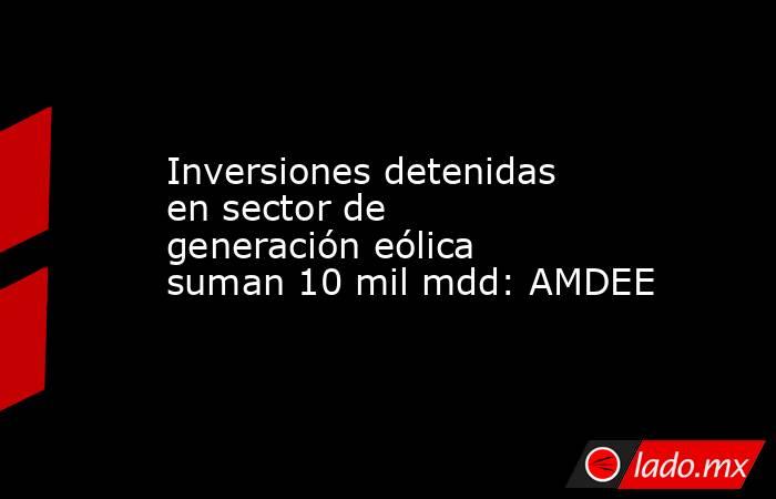 La Asociación Mexicana de Energía Eólica (AMDEE) señaló que en el país se encuentran detenidos 30 parques de generación eléctrica eólica, lo que suma 10 mil millones de dólares en inversiones, explicó su director ejecutivo, Héctor Treviño.