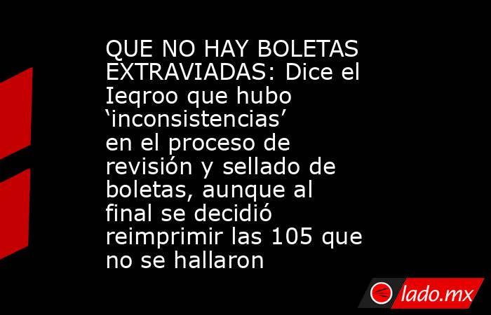 A través de agencias se dio a conocer la desaparición […]The post QUE NO HAY BOLETAS EXTRAVIADAS: Dice el Ieqroo que hubo ‘inconsistencias’ en el proceso de revisión y sellado de boletas, aunque al final se decidió reimprimir las 105 que no se hallaron appeared first on Noticaribe.