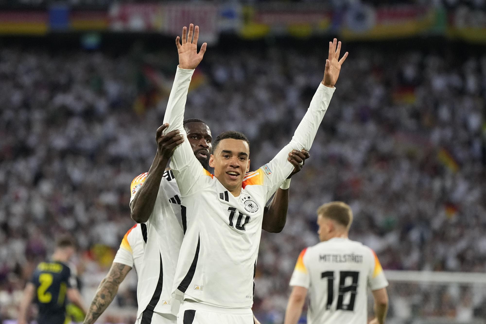 Con goles de Kai Havertz, Jamal Musiala, Florian Wirtz, Niclas Füllkrug y Emre Can, el combinado nacional dirigido por Julian Nagelsmann, así como un descuento de Antonio Rüdiger, vía autogol, venció 5-1 a los escoceses que su triunfo más grande fue en la tribuna.