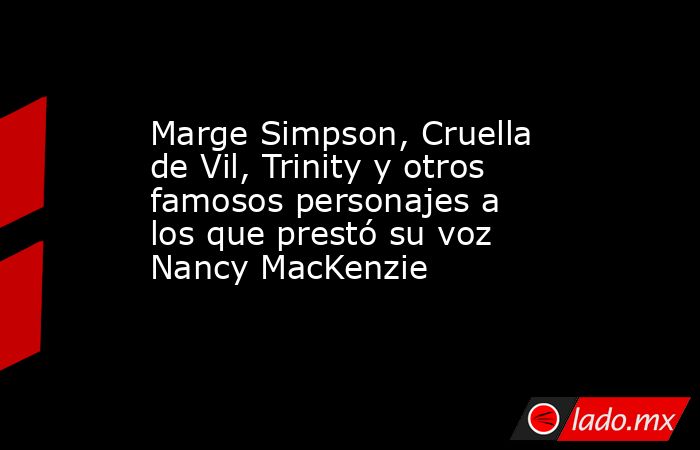 Este lunes 17 de junio se dio a conocer el deceso de Nancy MacKenzie, actriz de doblaje peruana radicada en México quien a lo largo de seis décadas formó parte de la cultura pop al darle voz a distintos personajes de series y películas, siendo el de Marge Simpson el más representativo de su trabajo.