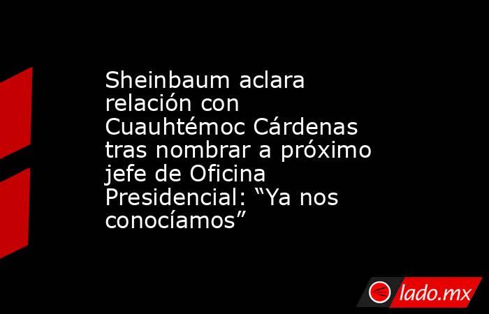 La presidenta electa Claudia Sheinbaum Pardo aclaró cuál es su relación con Cuauhtémoc Cárdenas, excandidato presidencial y exjefe de Gobierno capitalino, luego de que fue cuestionada sobre el nombramiento de Lázaro Cárdenas Batel, excoordinador de asesores de Andrés Manuel López Obrador, como titular de la Oficina de Presidencia de la República durante su sexenio, el cual comenzará el 1 de octubre y concluirá en el 2030.