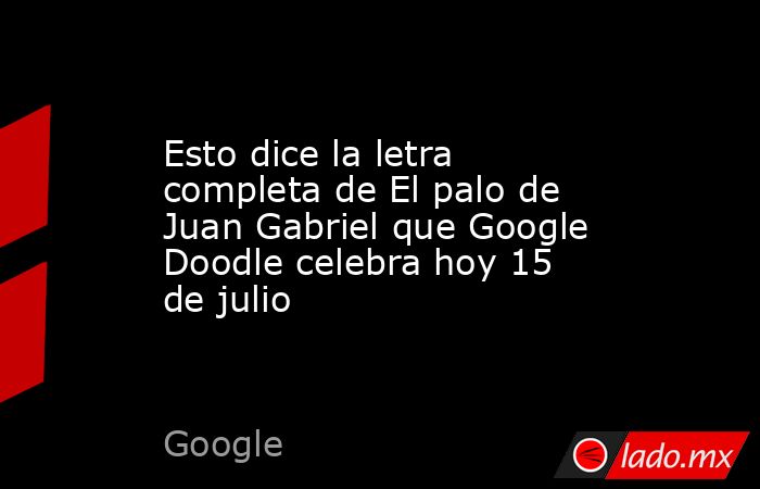 Orgullo es lo que sienten los mexicanos al encontrarse con que Google le dedicó su Doodle del 15 de julio a Juan Gabriel por su canción El Palo, pero ¿qué dice la letra completa?