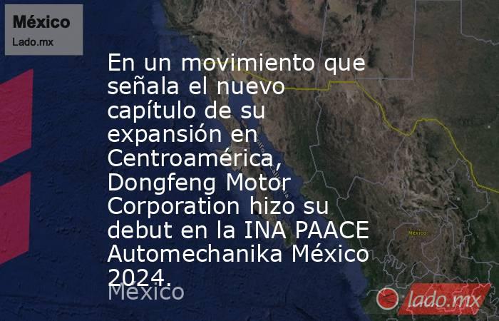 La mayor exposición de autopartes de Centroamérica, INA PAACE Automechanika México 2024, cobró vida el 10 de julio en el Centro de Exposiciones Citibanamex en la Ciudad de México. El destacado fabricante de automóviles chino, Dongfeng Motor Corporation, no solo exhibió sus vehículos DONGFENG HUGE, sino también motores, motores eléctricos, ejes y una variedad de otros componentes. Esta exhibición integral destacó la calidad de fabricación de Dongfeng, su capacidad de investigación y desarrollo, y sus sólidos sistemas de servicio.