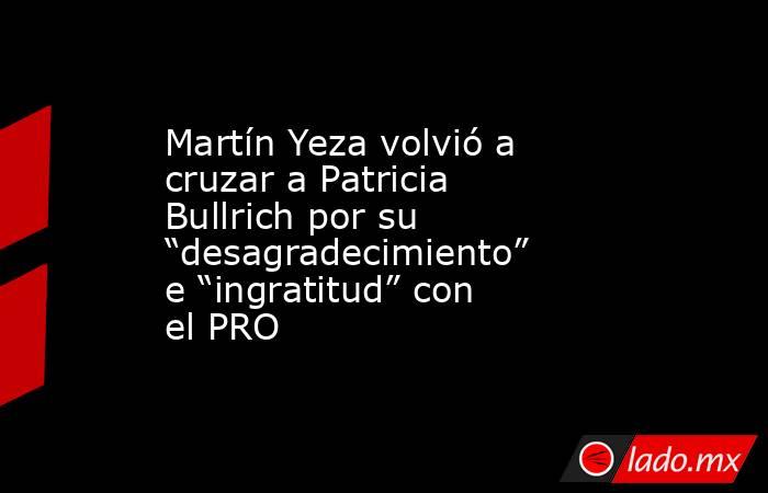 El presidente de la Asamblea del PRO, Martín Yeza, volvió a apuntar contra la ministra de Seguridad de Javier Milei, Patricia Bullrich, por su “desagradecimiento” e “ingratitud” con el PRO luego de brindar su apoyo a La Libertad Avanza (LLA) y unirse al Gabinete.