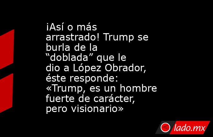 Pues a pesar de todos estos insultos y vejaciones, López Obrador no tiene empacho en seguir arrastrándose. En San Luis Potosí, al hablar de los resultados del Tratado de Libre Comercio, López Obrador se refirió a Trump en estas palabras: «Fíjense: va a ser secretario de Economía Marcelo Ebrard, toda la experiencia. En efecto, a él le tocó la negociación del Tratado de Libre Comercio con Estados Unidos en el tiempo del expresidente Trump, que es un hombre fuerte, de carácter, pero también visionario».