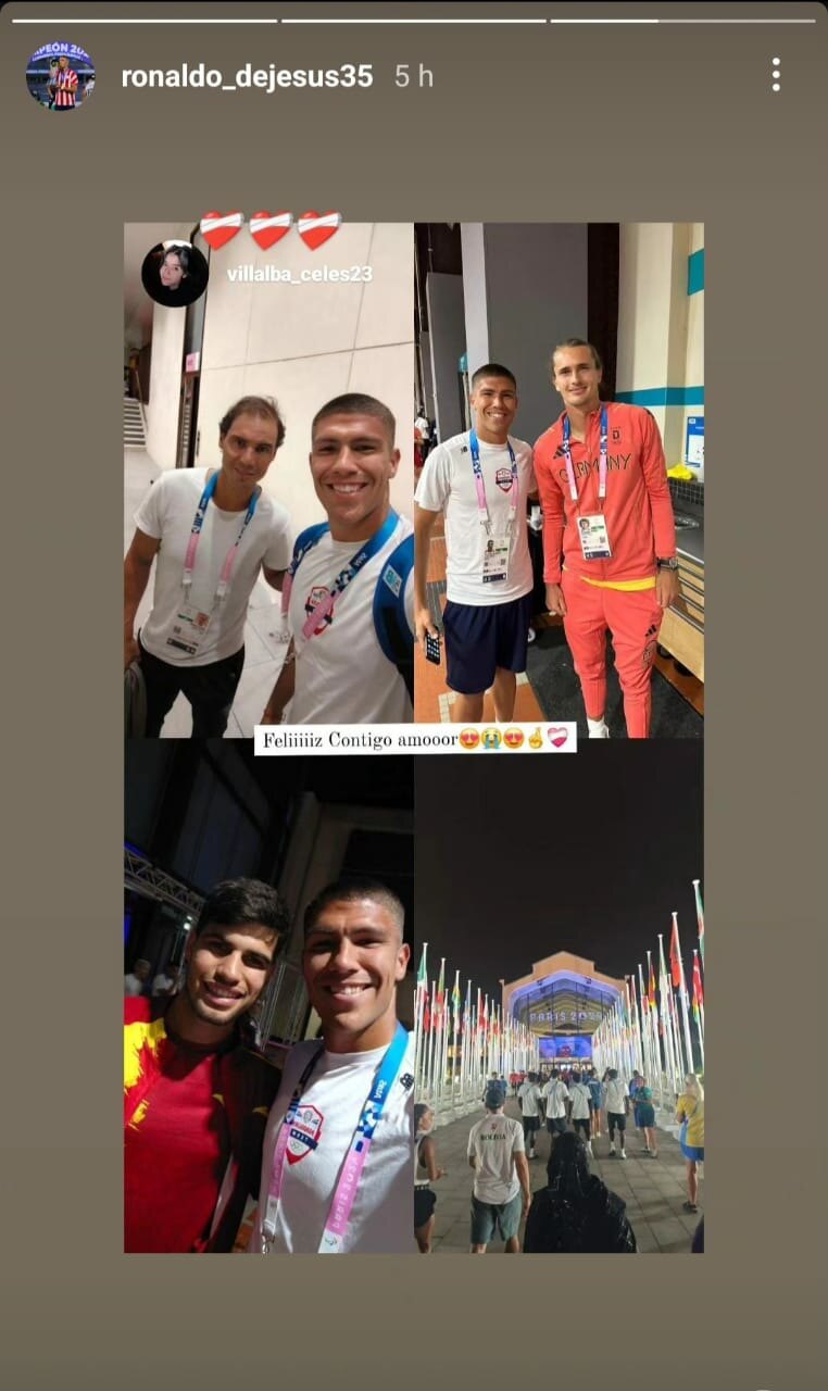 Imágenes con el propio Carlitos Alcaraz y el alemán, Alexander Zverev, también aparecieron en la historia de instagram del defensor guaraní, que se prepara para el duelo de este sábado frente a Israel, por la segunda fecha del Grupo D del fútbol masculino en los Juegos Olímpicos.