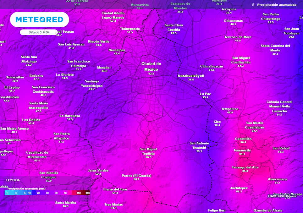 Es hoy lunes que podría ser el día más lluvioso con acumulados estimados en promedio de 10-25 mm y locales de 30-50 mm en cualquier punto, pero resaltando el norte, centro y sur sobre alcaldías como Azcapotzalco, Gustavo A.