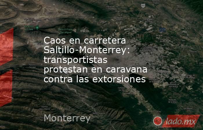 Integrantes de la Confederación nacional de Transportistas Mexicanos (Conatram) realizan una kilométrica caravana en la carretera que va de Saltillo, Coahuila, a Monterrey, Nuevo León, para exigir apoyo gubernamental ante las extorsiones que sufren en la entidad.