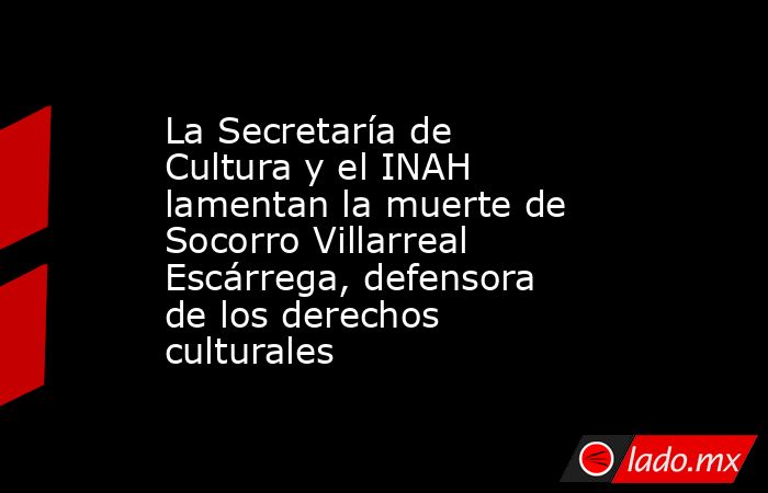 La Secretaría de Cultura del Gobierno de México y el Instituto Nacional de Antropología e Historia (INAH) lamentan el sensible fallecimiento de María del Perpetuo Socorro Villarreal Escárrega (1957-2024), quien desde 1998 se desempeñó como coordinadora nacional de Asuntos Jurídicos del INAH.