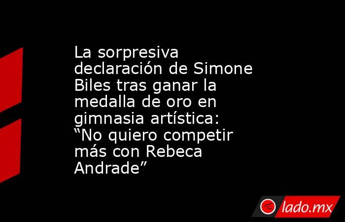 Luego de la consagración, Biles admitió que su principal competidora, Rebeca Andrade, le generó estrés con su actuación y la obligó a dar lo mejor de sí para quedar en lo más alto del podio: “Significa muchísimo para mí y es una locura. No quiero competir con Rebecca. No más. Estoy cansada como si ella estuviera demasiado cerca. Nunca he tenido una atleta tan cerca”.
