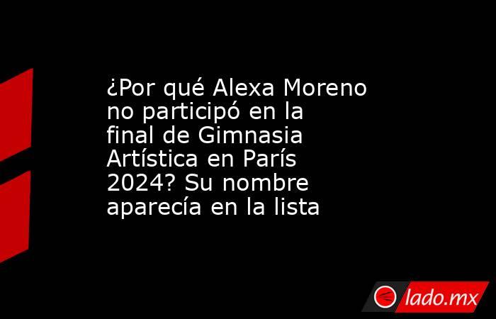 Alexa Moreno quedó fuera de la final de salto de caballo en gimnasia artística en los Juegos Olímpicos de París 2024. Sin embargo, a minutos de la justa, la incertidumbre sobre su posible participación creció por la aparición de su nombre en la agenda de la página oficial de la competencia.