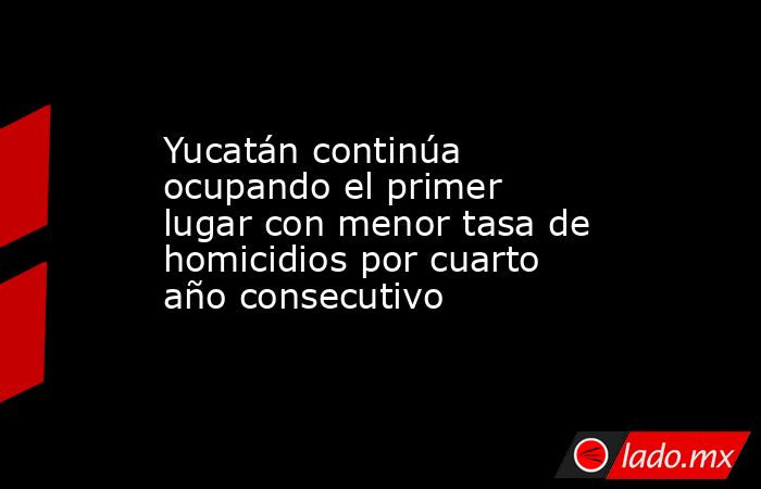 De acuerdo con datos del Instituto Nacional de Estadística y Geografía (INEGI), Yucatán se mantiene en el primer lugar con menor tasa de homicidios por cuarto año consecutivo al registrar una tasa de 2.2 casos por cada 100 mil habitantes, casi 11 veces menor a la tasa nacional de 24.