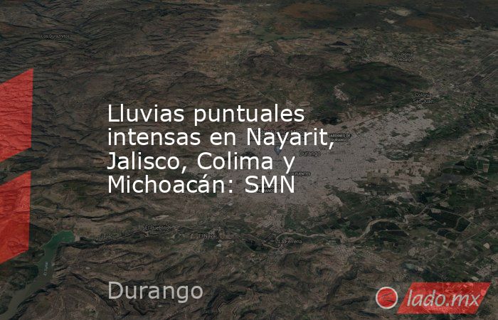 Cielo nublado con lluvias puntuales intensas acompañadas con descargas eléctricas y posible caída de granizo en Nayarit, Jalisco, Colima y Michoacán, las cuales podrían reducir la visibilidad, ocasionar inundaciones, encharcamientos y deslaves, así como incrementar los niveles de ríos y arroyos. Viento de dirección variable de 10 a 25 km/h en la región, con rachas de 40 a 60 km/h en zonas de Jalisco.